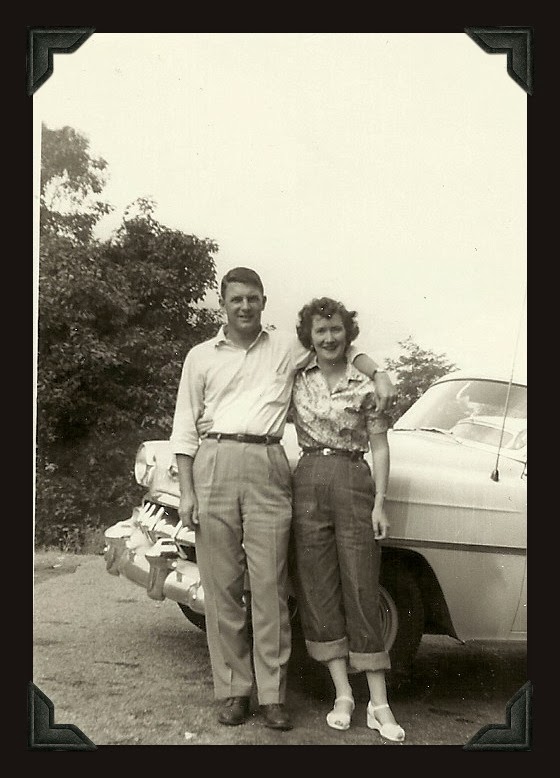 The above picture is of my Nanny and Granddaddy. I love this photograph for many reasons. It captures both of them in their youth and shows that Nanny was pretty stylish in the day. I love her tiny waist and shoes. Per my friend Ellen, Granddaddy was quite the “hottie”. When I told Nanny this, she simply laughed. My grandparents both grew up in the same small town but did not meet until after Granddaddy returned from War World II. They married in December 1946 and my Mom came along in November 1947.