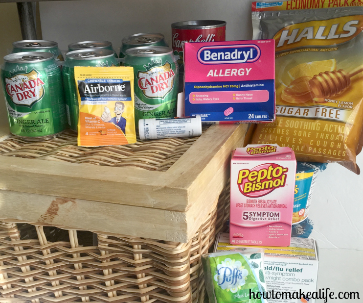 Great idea! We have a “sick day” drawer with meds for us all and a freezer full of homemade chicken soup.